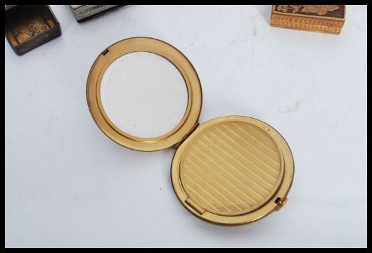 A collection of items to include vestas ( four ), a wooden velvet lined hinged box with St John's Church Newton Porthcawl and a ladies compact.