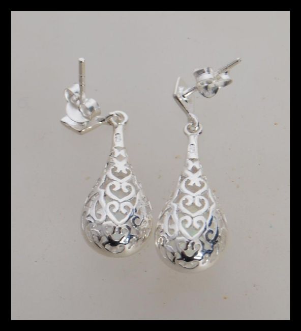 A pair of stamped 925 silver earrings set with opal panel drops. Stud backed. Weight 4.2g. Drops measure 3cm.