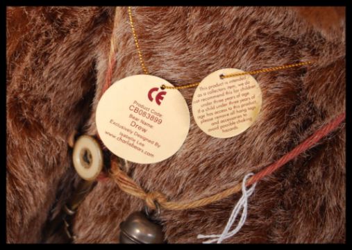A large Charlies Bears teddy bear ' Drew ' CB083899 - Exclusively Designed by Isabelle Lee. Brown tinted mohair, with felt pads. Complete with tags and necklace. Larger sized bear - measuring approx; 74cm tall.