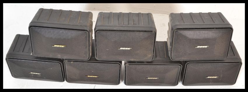 A set of seven Bose model 101 surround music speakers, removed from a local pub during refurb.