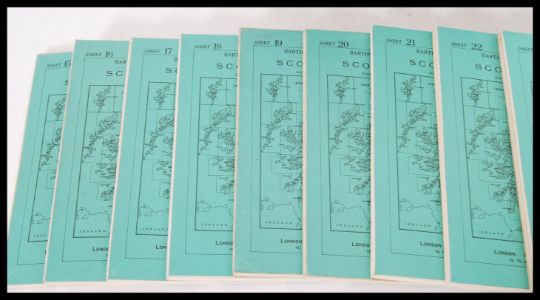 A boxed set of vintage Stanford's Maps for Cycling and Motoring including Bartholomew's Map of Scotland sheets 15-29. Canvas backed, published by Edward Stanford London.