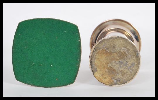 Two vintage 20th Century continental silver 830s solifleur candlesticks one raised on square base with tall column and the other of trumpet form raised on stepped circular base. Weighs 186 grams. Tallest measures 15cm high.