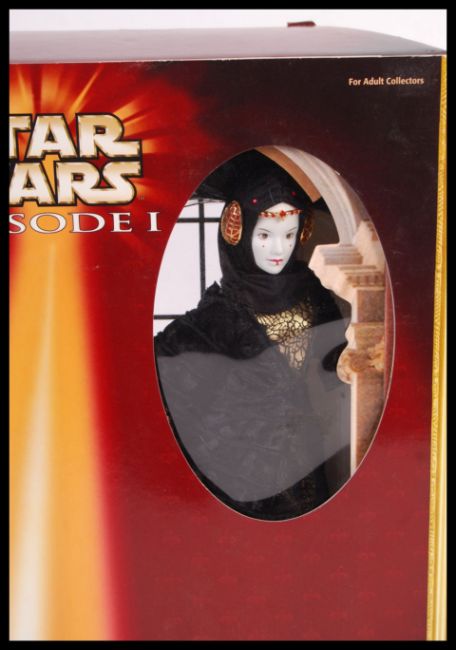 A good collection of assorted Hasbro made Star Wars Episode 1 boxed action figures and playsets. To include; Interactive Yoda, Queen Amidala 12" figure, Dancing Jar Jar Binks, Anakin Skywalker's Pod Racer, Sebulba's Pod Racer etc. All boxed, some appearing mint and unused. Good collection.