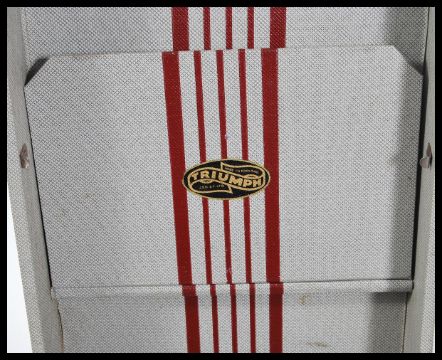 A vintage early 20th Century portable picnic gramophone by Triumph in black leatherette case. Measures 16cm high x 42cm wide.