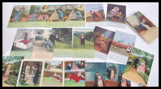 Bamforth Song postcards. Large accumulation (600), antique Circa First World War, with War-time patriotic (Army & Navy), sentimental, romantic etc. Many sets. Much collected publisher. Popular WWI issues.