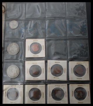 Three albums of assorted coins to include a good assortment of British Half Crowns dating from 1920's - 1960's, 3 pence pieces dating from 1916-1920, a large collection of penny's dating from 1896 - 1967, 20th Century Scandinavian coins including a 1964 10 Kroner coin, a selection of American coins to include 1950's silver half dollars, 1977 Canadian proof coins, Japanese Government notes, 1967 Canadian dollars etc.