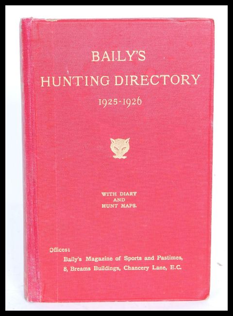 Hunting Interest - Baily's Hunting Directory 1925-26 With Diary and Hunt Maps published by Vinton & Co 1925, containing vintage maps and advertising, cloth bound with gilt titling.