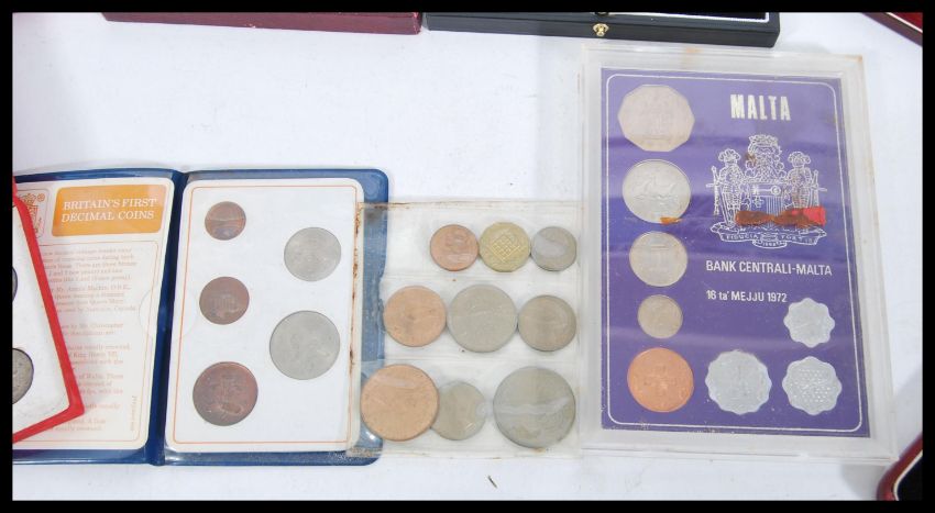 A collection of 20th Century proof and specimen coins, to include 1953 coin set, 1937 specimen coins including maundy money, malta 1972 coin set, festival of Britain 1951 coin set, 1950 coin set and Royal mint 1984-87 United Kingdom £1 silver proof piedfort collection.