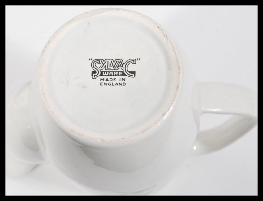 A collection of 20th Century vintage and novelty tea and coffee pots to include two Wedgwood blue pacific coffee pots, a T G Green Cornish ware ' Channel Islands ' design coffee pot, a 1970's Denby brown floral coffee pot, a Wade Alice and Wonderland White Rabbit teapot, a Kensington Morris Minor novelty car teapot etc. Largest measures 28cm high
