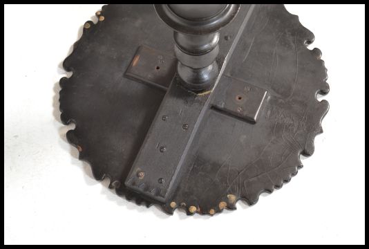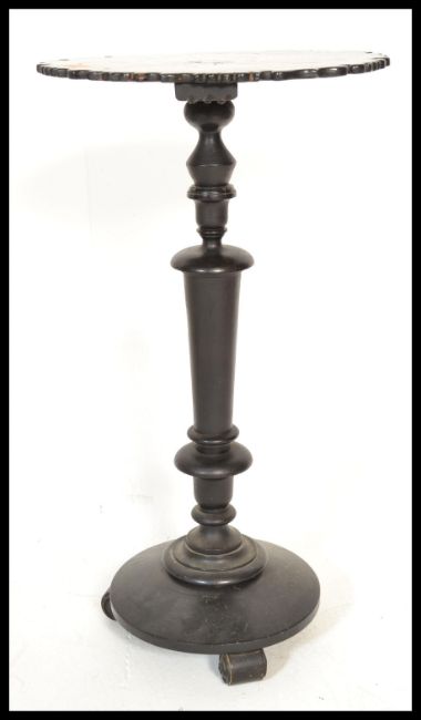 A Victorian 19th century ebonised side table having a round top and base
