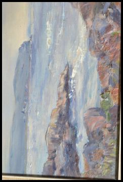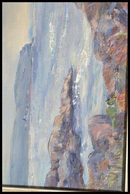 A original oil on canvas painting of a coastal scene depicting a seascape under stormy skies. Unsigned and framed. Measures 90 cm x 50 cm.