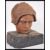 A 19th Century carved wooden bust head of a child wearing a bonnet raised on ebonised wooden plinth base with detailed features. Measures 25cm high x 17cm width.