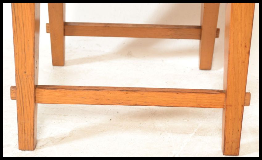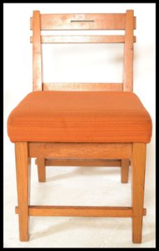 A stunning mid 20th Century beech framed Danish chair, the bar back chair supports united angular uprights above a vibrant orange upholstered seat pad raised on angular tapering supports united by stretchers. Measures 82 cm high x 48 cm x wide 48 cm deep.