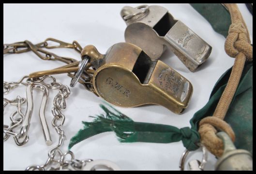 A collection of vintage early 20th Century whistles to include GWR railway, Military, Police, ACME, The City, Hudson 1905, The Metropolitain, Guide etc.