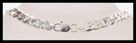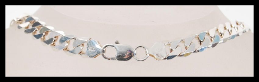 A stamped 925 silver flat link necklace chain having a lobster clasp. Weight 61.6g. Measures 22 inches long.