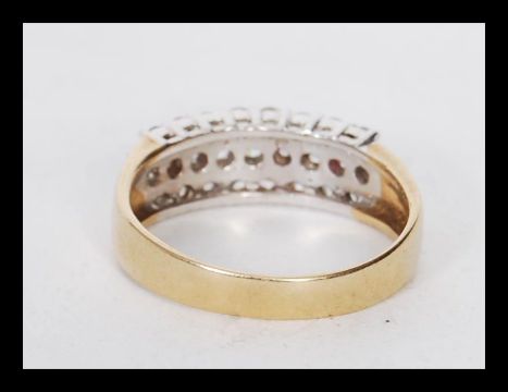 A hallmarked 9ct gold diamond and sapphire ring having 13 stones in a flush eternity setting. Weighs 2 grams size L.5.
