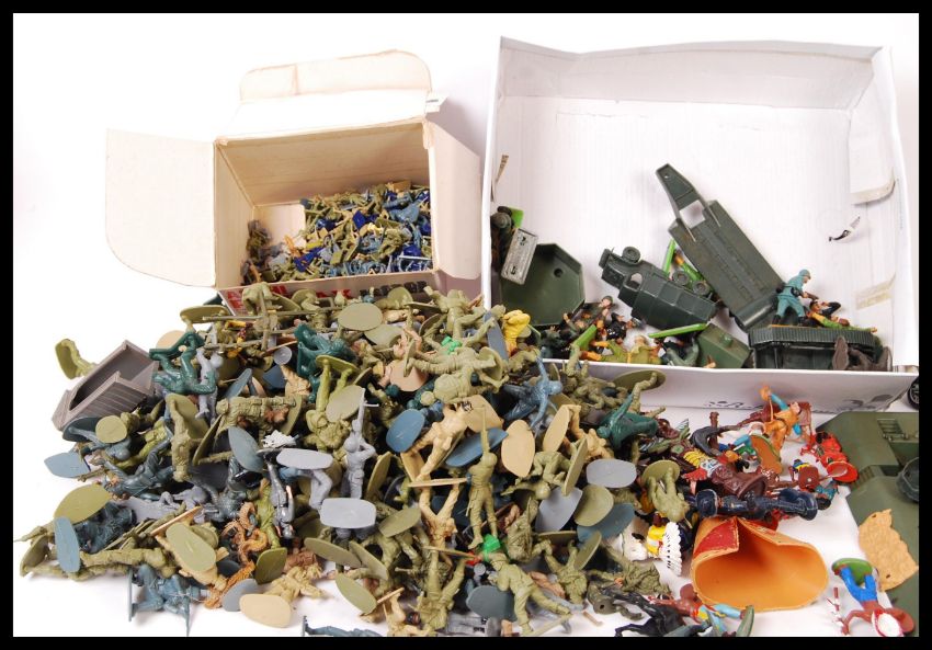 A collection of assorted model plastic military soldiers to include; Britains, Britains Deetail, Timpo and Airfix.