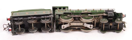 A rare vintage Hornby 0 gauge railway trainset locomotive ( 20v electric ) ' Braham Moor '. With tender. Green livery, No.201 LNER 4-4-0. Complete with both nameplates. Rare model train. Unboxed.