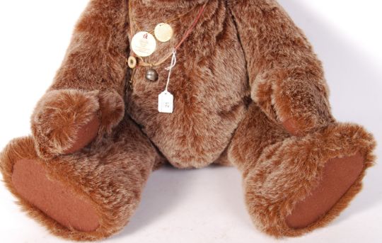 A large Charlies Bears teddy bear ' Drew ' CB083899 - Exclusively Designed by Isabelle Lee. Brown tinted mohair, with felt pads. Complete with tags and necklace. Larger sized bear - measuring approx; 74cm tall.