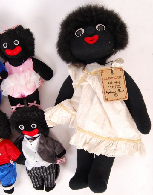 A collection of retro 1990's Golly Dolls to include; 5x Golly It's Good dolls by James Robertson & Co 1999 along with a Country Life Robert Rive Calico Golly 283/500 with tags. All appear in new condition.