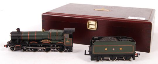 A Bachmann Branch Line 00 Gauge model railway trainset locomotive 4-6-0 Raveningham 6960 in green livery with tender. Within in the original wooden presentation case.