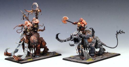 Warhammer - two Warhammer Games Workshop ' Age Of Sigmar ' models / figures - Thundertusk and Stonehorn. Both with riders. Pro-painted, to an incredible standard. Superbly detailed models. Both on bases. Note: from a large and impressive ' pro-painted ' plastic Warhammer fantasy tabletop wargaming collection. Each superbly painted and highly detailed (unless stated).