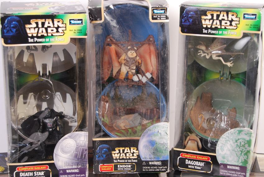 A collection of 5x Kenner made ' Power Of The Force ' series boxed action figure playsets. Comprising: Dagobah with Yoda, Endor with Ewok, Death Star with Darth Vader, Rancor and Luke Skywalker and Bantha with Tusken Raider. All appear loose in the original boxes, but complete (unchecked). Boxed.