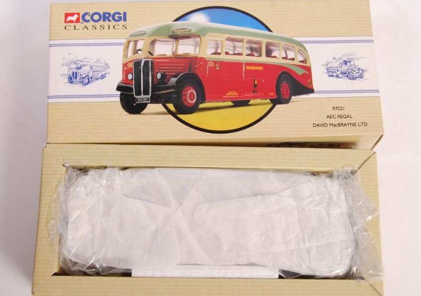 A collection of 8x Corgi Classics made diecast model buses - to include; Titfield Thunderbolt 33801, 97342, 97363, 97021, 97018 and others. All appear mint and unused, with certificates, within the original boxes.