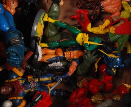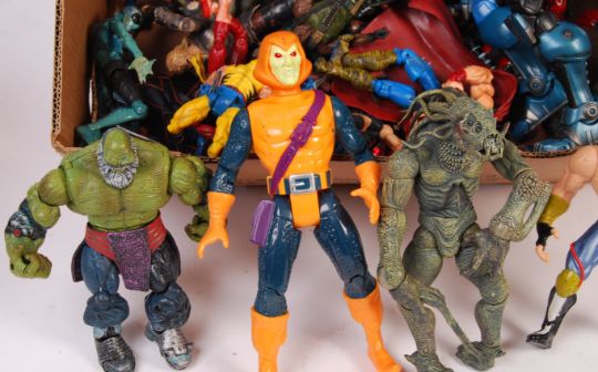 A collection of assorted loose / unboxed action figures. Various series / lines, to include; ToyBiz Marvel figures (including some empty boxes), Mezco Resident Evil figures, Wolverine, and many others. Interesting assorted collection.