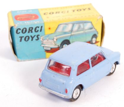 Two original vintage Corgi Toys diecast models - No. 226 Morris Mini Minor (in blue) (model - good to good+, box poor) and No. 424 Ford Zephyr Estate Car (model near mint, but paint fading/staining, box poor). Both with Corgi Club leaflets present.
