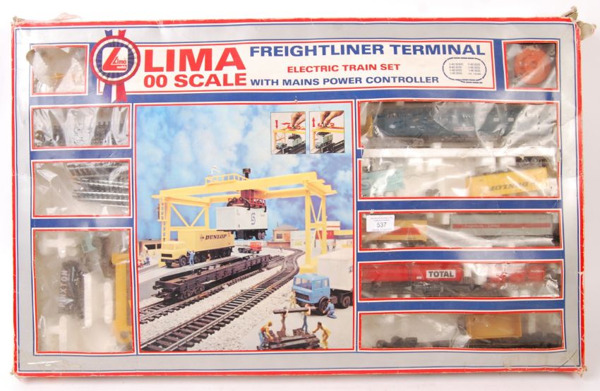 A large vintage Lima Railways 00 gauge model railway trainset ' Freightliner Terminal '. Contents appear largely correct, but some are miscellaneous Lima rolling stock items. Boxed.