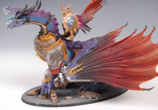 Warhammer - a Games Workshop Warhammer pro-painted Stormcast Eternals figure / model of ' Drakesworn  '. Incredibly detailed. Pro-painted, with remarkable details present. Measures approx; 16cm tall. Complete with rider. Note: from a large and impressive ' pro-painted ' plastic Warhammer fantasy tabletop wargaming collection. Each superbly painted and highly detailed (unless stated).