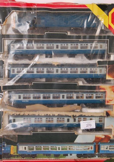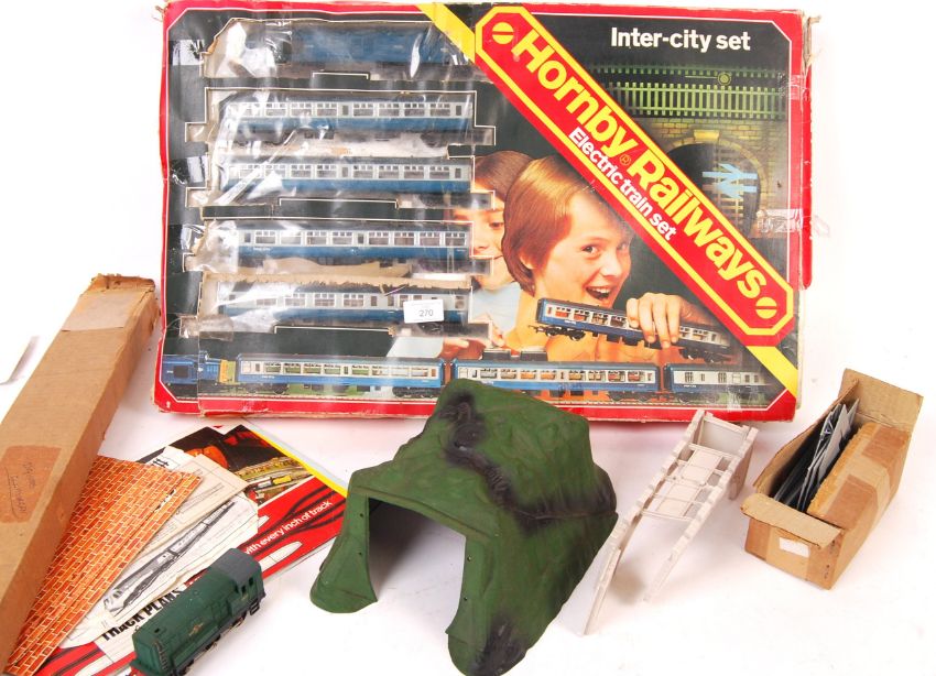 A selection of vintage Hornby 00 gauge model railway items - to include a boxed ' Inter-City ' set (appears largely complete), along with other loose items - a tunnel, locomotive and a small amount of boxed track etc.