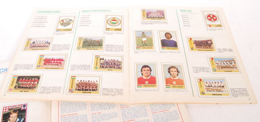A set of 3x vintage football sticker books to include; F.K.S Soccer Stars 1977-78, Figurine Panini Euro Football and Figurine Panini Football 78 Collector's album. All appear in excellent condition and 100% complete.