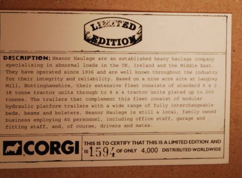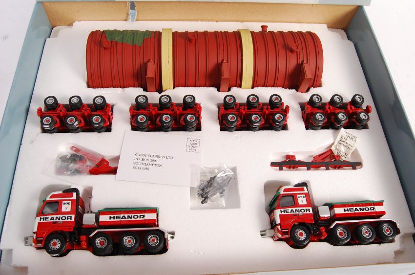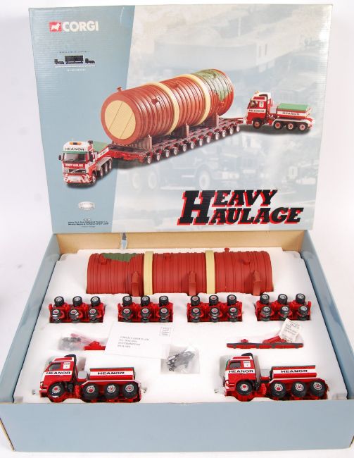 A Corgi Heavy Haulage boxed diecast model set CC12403 ' Volvo FH 4 Axle Ballasted Tractor x2, Nicholas Bogies & Fertiliser Dryer Load '. Appears mint and complete, within the original box. Certificate present.