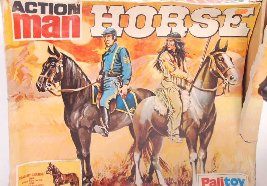 An original vintage Palitoy made Action Man ' Cavalry Charger Horse ' set No. 34452. Unchecked for completeness. Within it's original box. Rare.