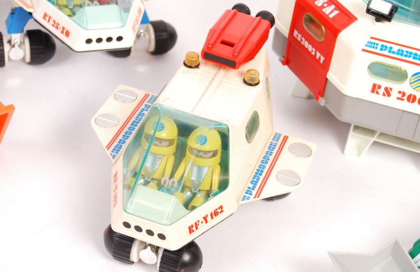 A collection of rare vintage 1980's Playmobil ' Playmospace ' action figures and sets. All generally appearing in good condition, and all largely complete (some smaller parts may be missing). To include; RT28X0 Shuttle, Space Station, Rover, and others. Along with a quantity of Playmobil figures, weapons and accessories. Great vintage collection.