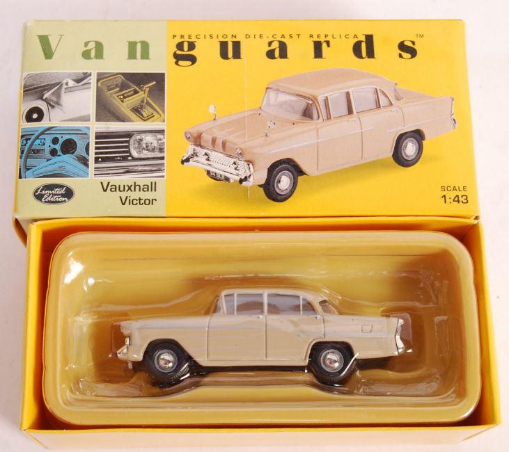 A collection of 10x Vanguards made 1:43 scale precision boxed diecast models. All appearing mint and unused. To include; VA6008, VA44000, VA27009, VA33001, VA38004, VA53001 and others. Boxed.