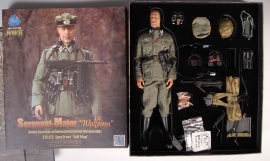 1/6 Scale Collection - a DID Corp made 1:6 scale military WWII Second World War German Nazi model action figure ' Sergeant Major - Wolfram '. Appears mint. Only ever displayed, and believed to be complete (some accessories will be dressed on the figure, and thus appear 'missing' from the box). Within the original box. Highly detailed.Note: from an impressive large 1/6 scale military action figure collection including DiD Corp, Dragon, Hot Toys, 3Reich, and others. Whilst several figures are mint and unused, the majority of the collection comes from items that have been on display. Whilst condition of all these items is generally mint, some may show signs of display use. East Bristol Auctions does not guarantee the contents or completeness of any boxed or loose figure, and buyers are reminded to satisfy themselves as to condition / completeness prior to bidding on any lot, irrespective of description.