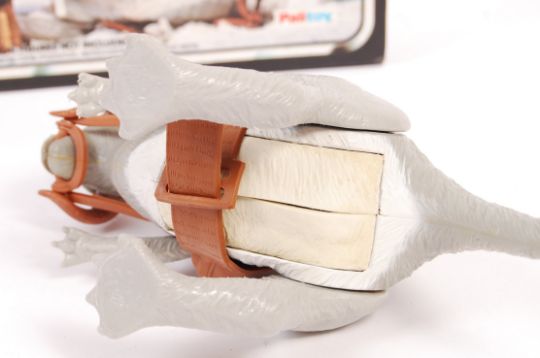 An original vintage Palitoy made Star Wars ' Tauntaun - With Open Belly Rescue Feature ' action figure. Tauntaun appears mint, with saddle and horns. Also included is the correct Han Solo In Hoth Gear action figure. Outer box very good. Complete with original Star Wars figure catalogue. An excellent example.