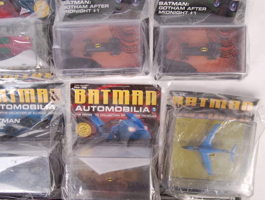 A collection of 11x Eaglemoss made ' Batman Automobilia ' boxed diecast models - all with their respective magazines present (bar one issue). All models appear mint and unused, within their original display boxes. Highly detailed.