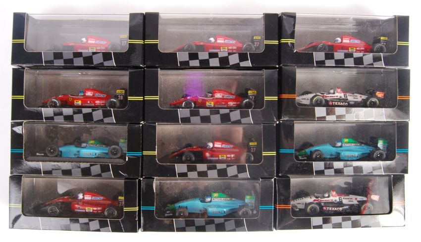 A collection of 12x Onyx made 1:43 scale precision boxed diecast model racing cards. All ' Formula 1 ' collection. Each appears mint, within the original display boxes - . Highly detailed models.