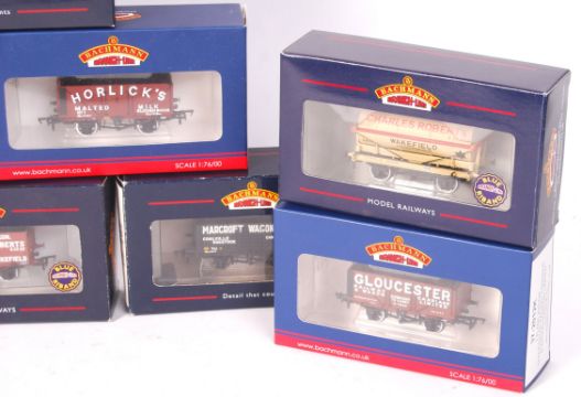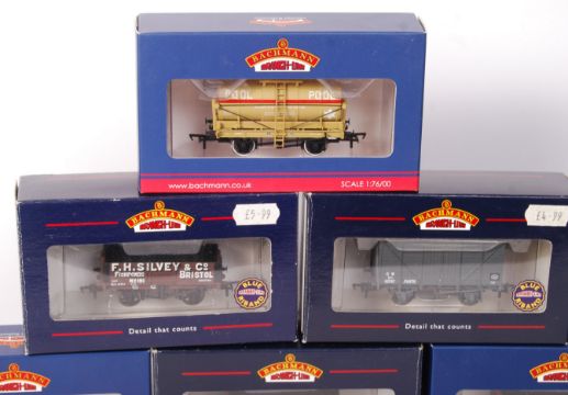 A collection of 12x Bachmann Branch Line 00 gauge railway rolling stock wagons. All appear mint (likely unused) within their original boxes. To include; 37-2003, 37-2015K, 33-300C, 37-425, 37-100 and others. All boxed.