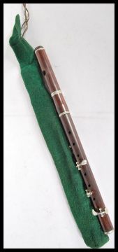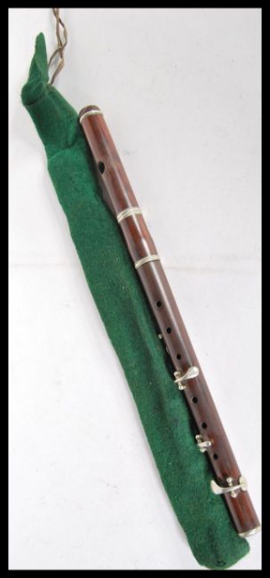 An Edwardian early 20th Century rosewood Flute, having nickel plated keys, kept within a green felt bag. Measures 39cm long.