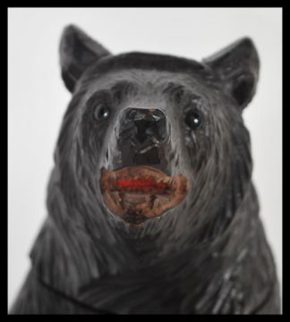 A German Black Forest hand carved wooden tobacco pot or tea caddy in the form of a bear having hinged lid to head. 21.2cm high 16cm wide.