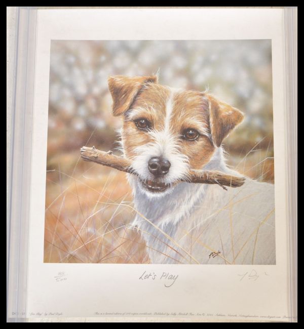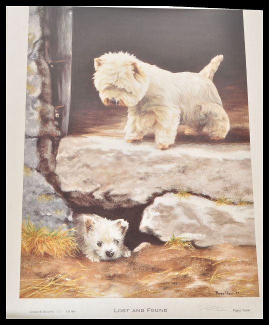 A collection of limited edition prints of dogs to include ' Lets Play ' after P Doyle featuring a Jack Russel with a stick in its mouth, no. 188/500 signed to the corner, ' The King and I ' featuring two Cavalier King Charles Spaniel's, no. 471/800 signed to the corner and ' Lost and Found ' after Pippa Threw depicting a Westie and her puppy, no. 323/800 signed to the corner.
