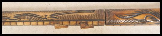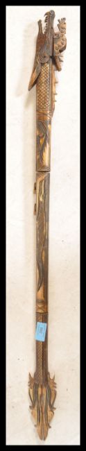 A 20th Century cast resin Chinese ceremonial staff int he form of a dragon, having three interlocking sections with carved detailing and pierced features to the face. Measures 90cm long.