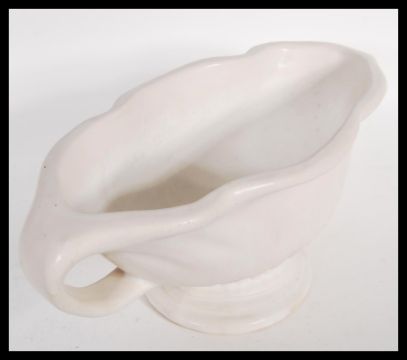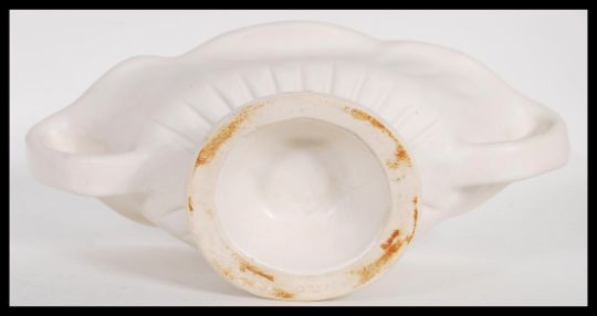 A vintage 20th century cream glazed pottery plant vase / table centerpiece, influenced by florist and designer Constance Spry for Fulham Pottery having twin shaped handles raised on a stepped circular base. Impressed Fulham pottery marks to base. Measures 15cm high x 47cm width.