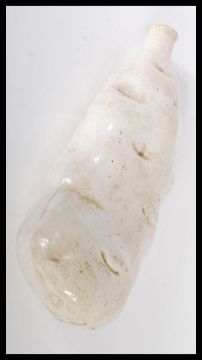 A 19th century ceramic flask in the form of a potato. Made as a mockery of the Irish potato famine. Measures 26 cm long.