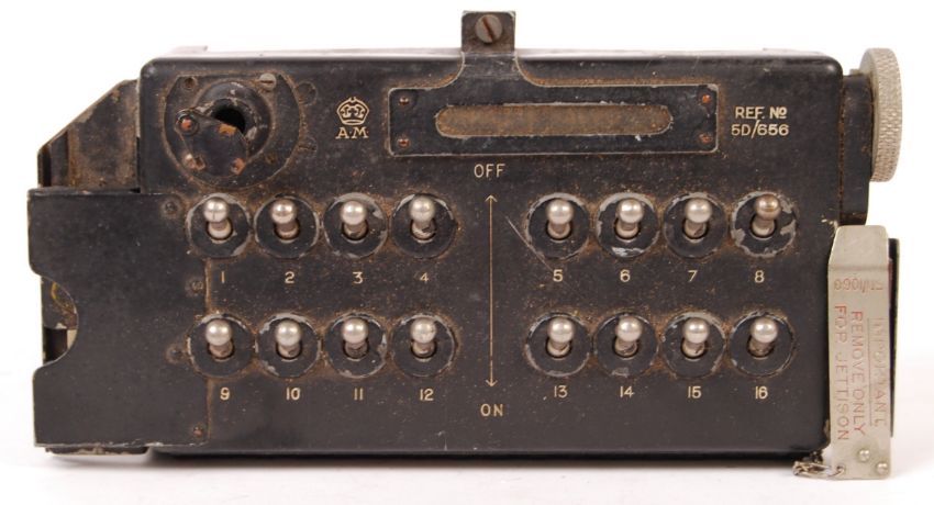 A rare original WWII Second World War Lancaster Bomb-Aimers Bomb compartment arming switch panel. Service used, the switch panel features various official Air Ministry markings, and would've been used in a standard bomb aimer panel in an Avro Lancaster . The unit, whilst showing signs of wear and use, appears to be in full working order with all switches still locking, and the 'mode selector' still turning.